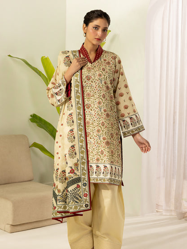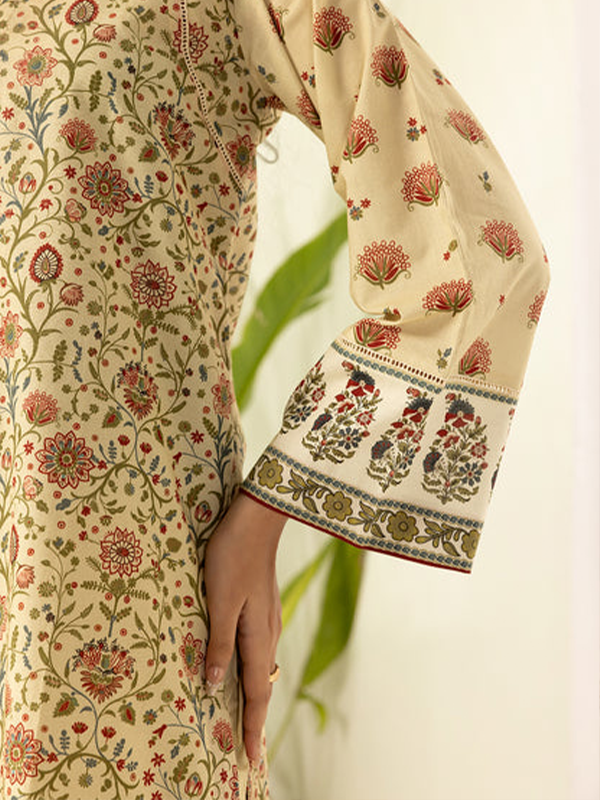 Zellbury 3-Piece Beige Digital Printed Unstitched Textured Lawn Suit