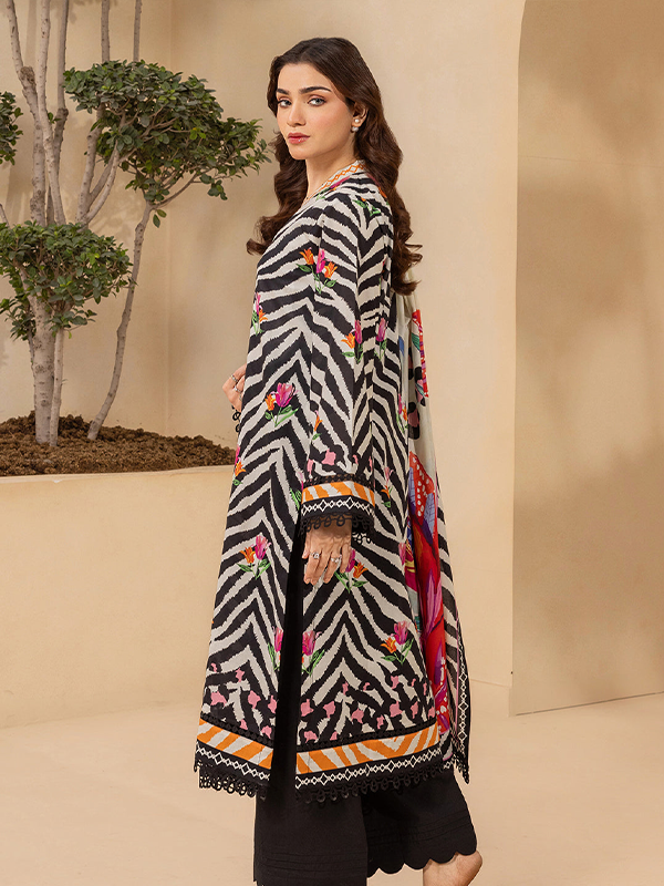 Zellbury 3-Piece Black Unstitched Digital Printed Textured Lawn Suit
