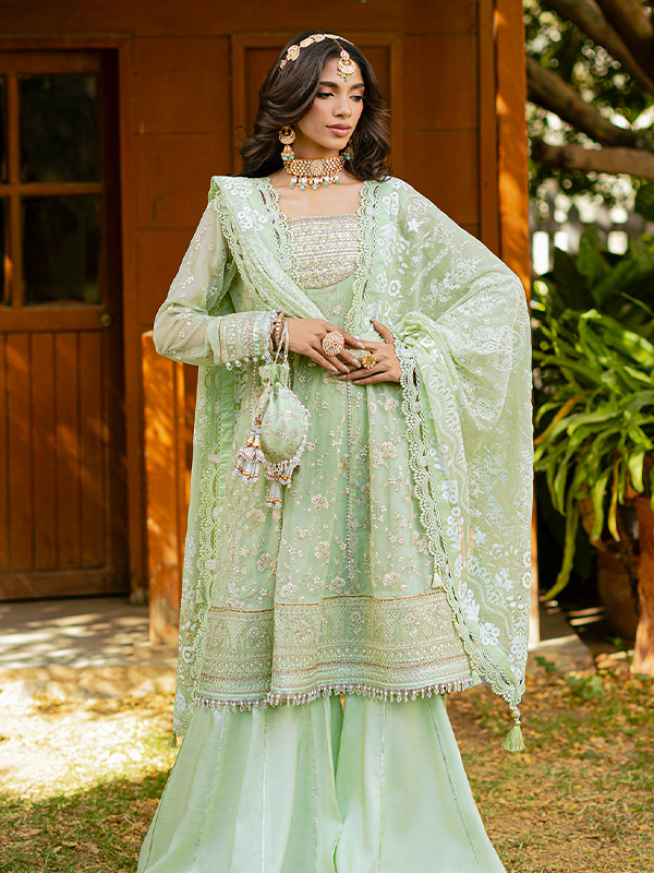 Zellbury Bamber Chiffon 3PC Embroidered Suit with Mukesh Dupatta