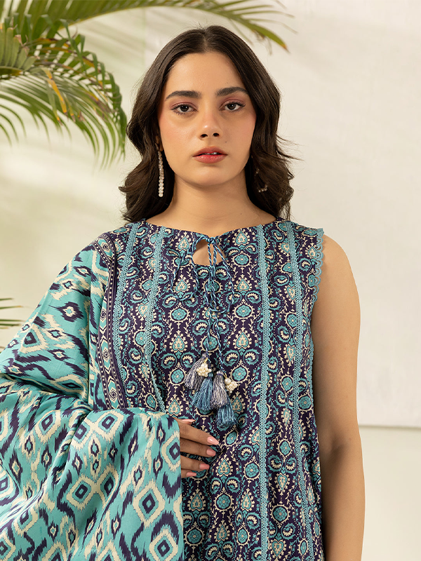 Experience the stunning teal-glamour of this unstitched 3-piece lawn suit, featuring a vibrant digital print in shades of blue and beige. Crafted from lightweight lawn fabric, it ensures breathable comfort for summer wear. The unstitched design allows you to tailor the fit according to your own style statement, making it both versatile and chic.